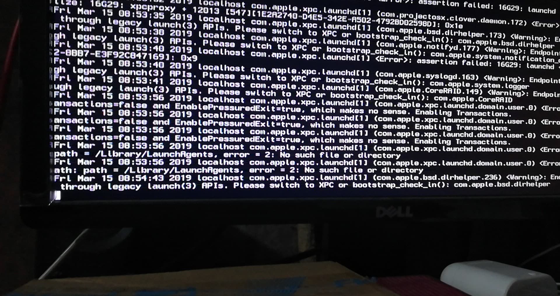 (3)またしてもカーネル画面がダダーっと出た後、ついにUSBの助けを借りた状態のMojaveが立ち上がります。ネットも繋がるし、メールも見れます。